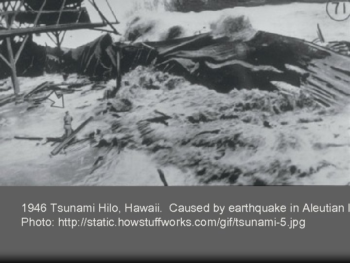 1946 Tsunami Hilo, Hawaii. Caused by earthquake in Aleutian I Photo: http: //static. howstuffworks. com/gif/tsunami-5. jpg