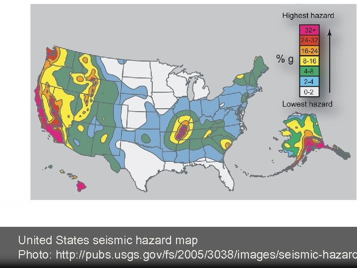 United States seismic hazard map Photo: http: //pubs. usgs. gov/fs/2005/3038/images/seismic-hazard
