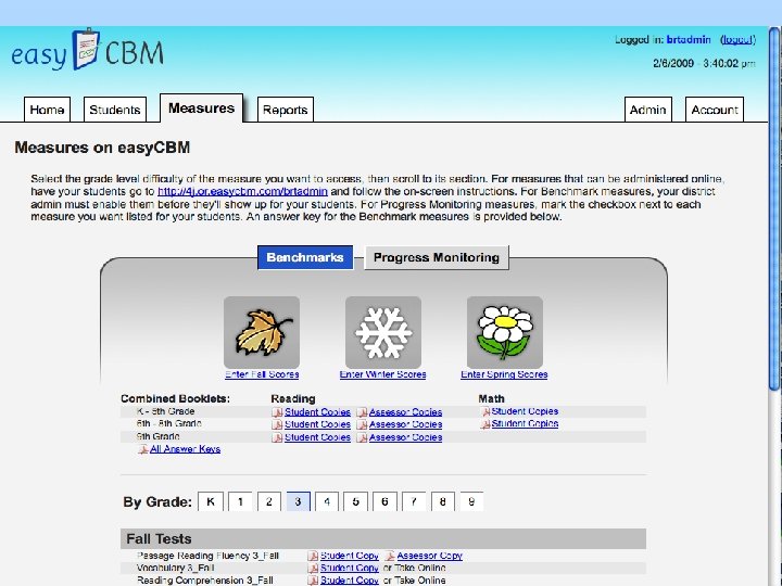 Assessments to Facilitate Instruction What does it take for a seamless integration of a benchmarking and progress monitoring system? üAssess the right things üScale the measures for sensitivity and reliability üMake it easy for schools to use üGet teacher buy in üAlign with important criterion measures