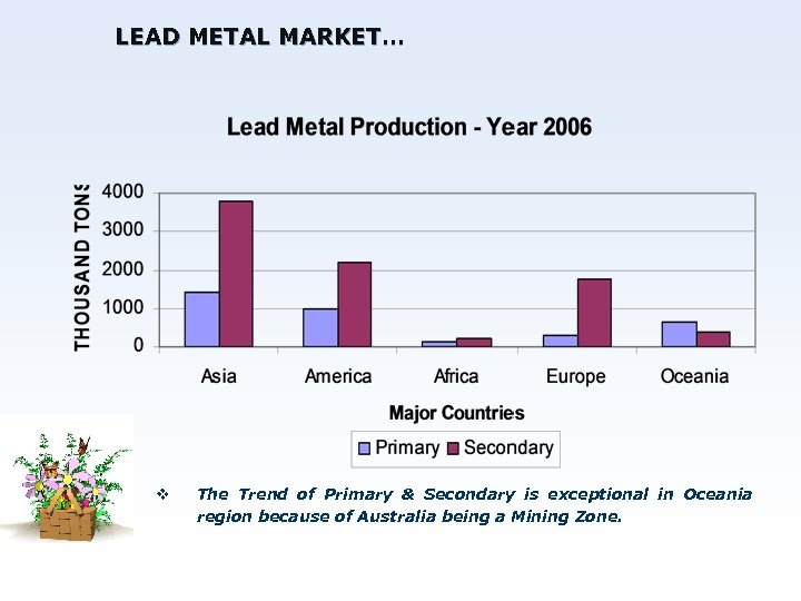 LEAD METAL MARKET… v The Trend of Primary & Secondary is exceptional in Oceania region because of Australia being a Mining Zone.