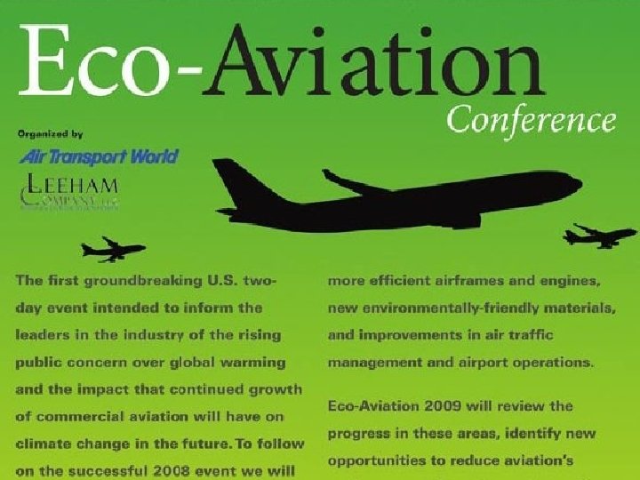 ACHIEVING A GLOBAL APPROACH TO REDUCING AVIATION EMISSIONS At Greener Skies 2009 aviation leaders will outline their visionary plans to make aviation greener as they seek a rightful place among industry equals at the world most important climate change forum. Aviation is responsible for 2% of man-made CO 2 emissions worldwide