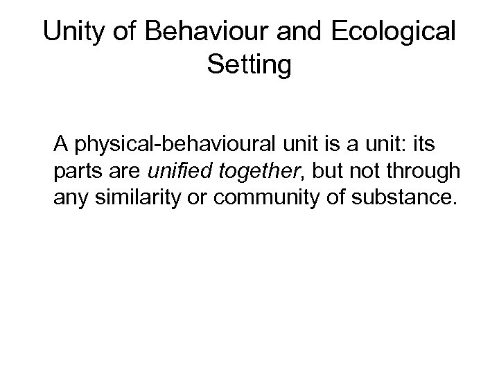 Unity of Behaviour and Ecological Setting A physical-behavioural unit is a unit: its parts are unified together, but not through any similarity or community of substance.
