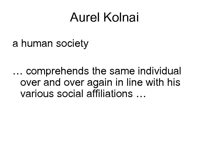 Aurel Kolnai a human society … comprehends the same individual over and over again in line with his various social affiliations …
