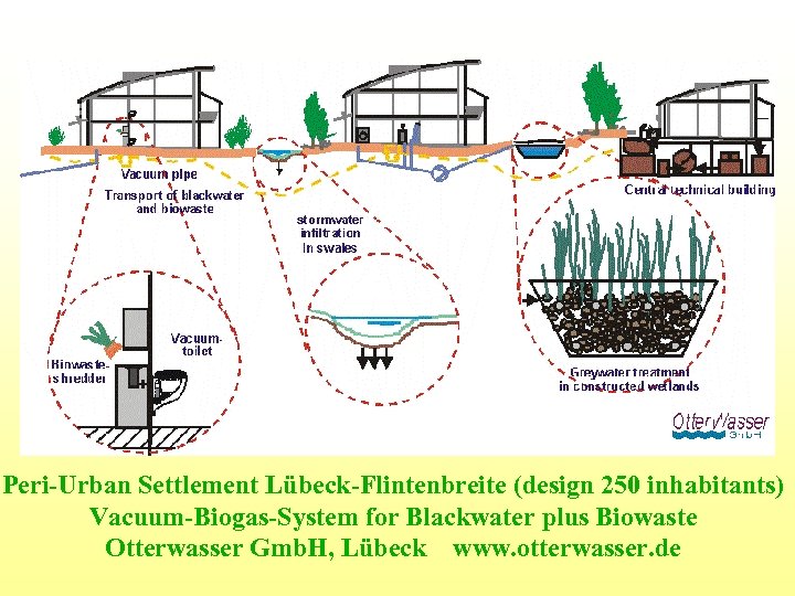 Peri-Urban Settlement Lübeck-Flintenbreite (design 250 inhabitants) Vacuum-Biogas-System for Blackwater plus Biowaste Otterwasser Gmb. H, Lübeck www. otterwasser. de