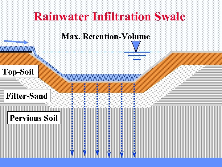 Rainwater Infiltration Swale Max. Retention-Volume Top-Soil Filter-Sand Pervious Soil