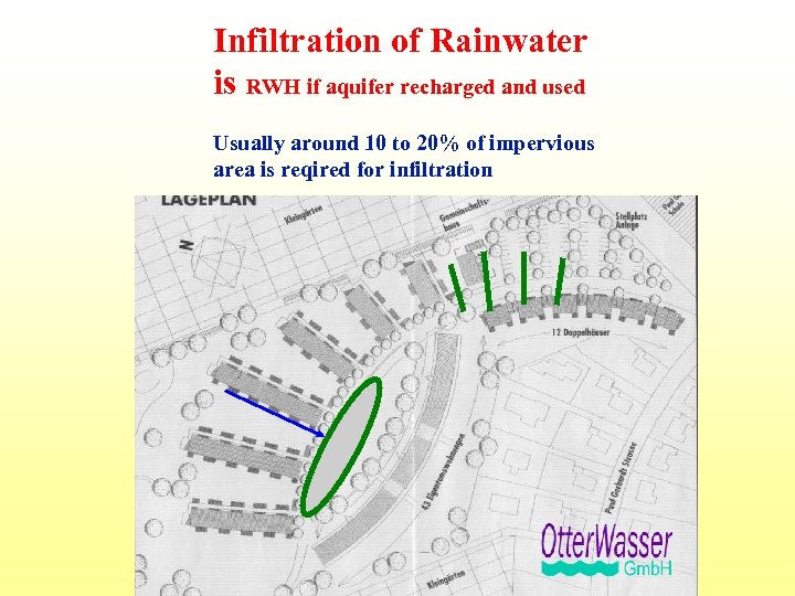 Infiltration of Rainwater is RWH if aquifer recharged and used Usually around 10 to 20% of impervious area is reqired for infiltration