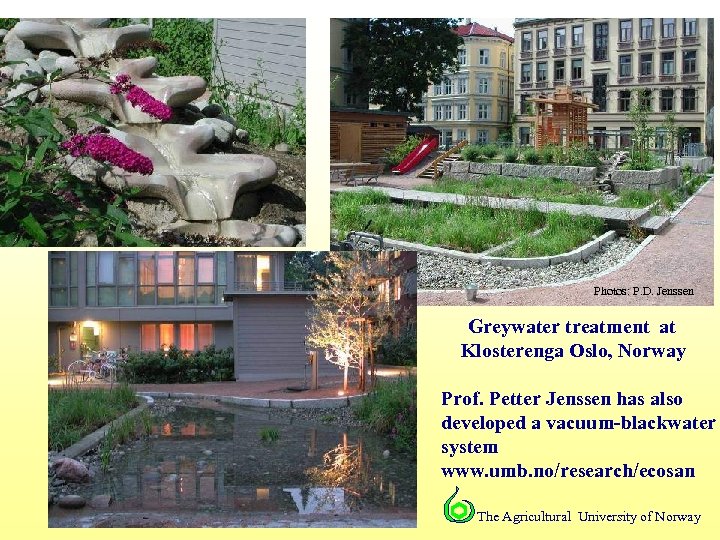 Photos: P. D. Jenssen Greywater treatment at Klosterenga Oslo, Norway Prof. Petter Jenssen has also developed a vacuum-blackwater system www. umb. no/research/ecosan The Agricultural University of Norway