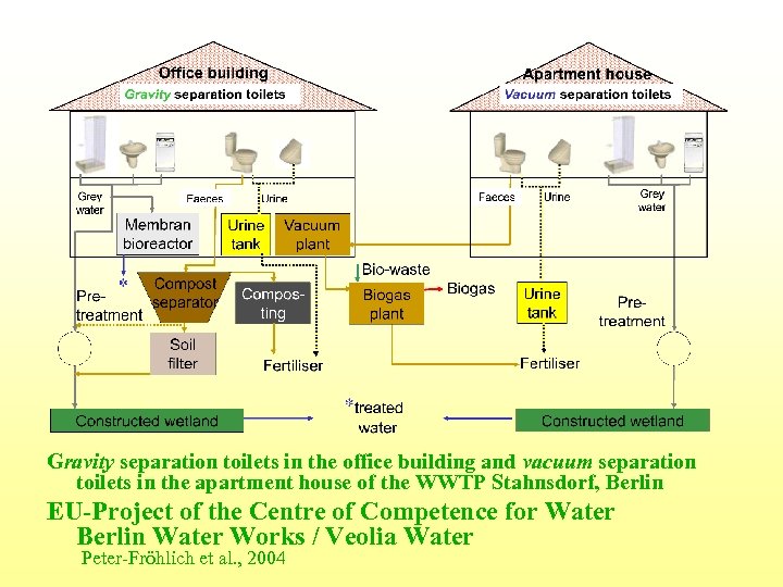 Gravity separation toilets in the office building and vacuum separation toilets in the apartment house of the WWTP Stahnsdorf, Berlin EU-Project of the Centre of Competence for Water Berlin Water Works / Veolia Water Peter-Fröhlich et al. , 2004