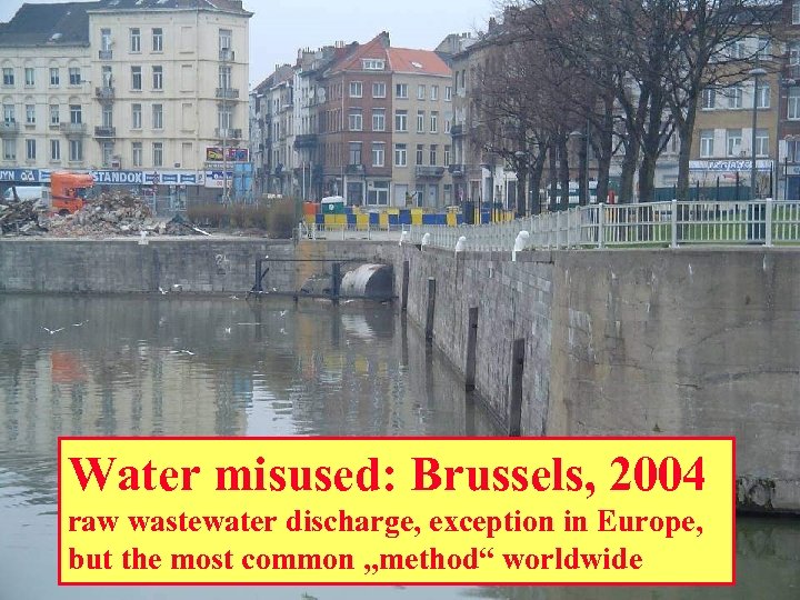 Water misused: Brussels, 2004 raw wastewater discharge, exception in Europe, but the most common „method“ worldwide