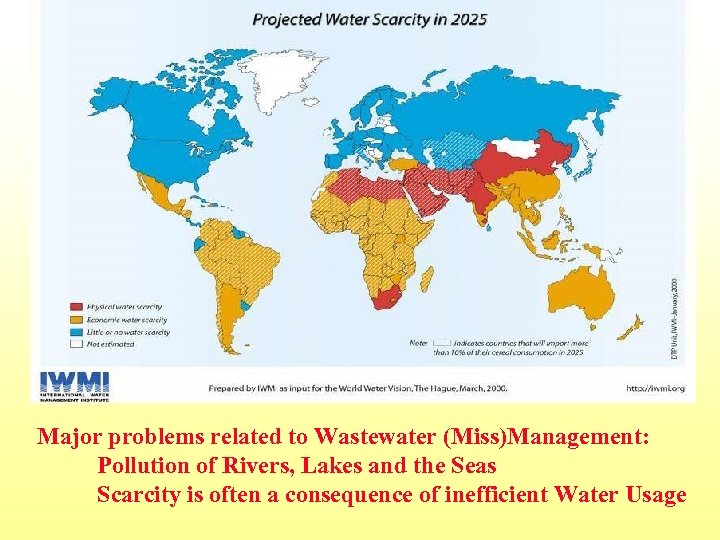 Inefficient Water Usage, Loss of Soil Fertility, Pollution of Rivers, Lakes and the Seas Major problems related to Wastewater (Miss)Management: Pollution of Rivers, Lakes and the Seas Scarcity is often a consequence of inefficient Water Usage