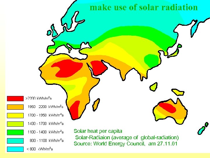 make use of solar radiation Solar heat per capita Solar-Radiaion (average of global-radiation) Source: World Energy Council, am 27. 11. 01