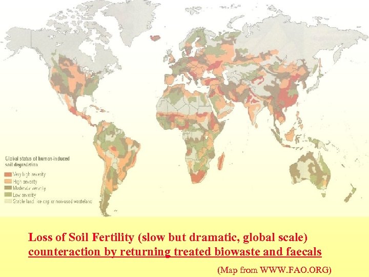 Loss of Soil Fertility (slow but dramatic, global scale) counteraction by returning treated biowaste and faecals (Map from WWW. FAO. ORG)
