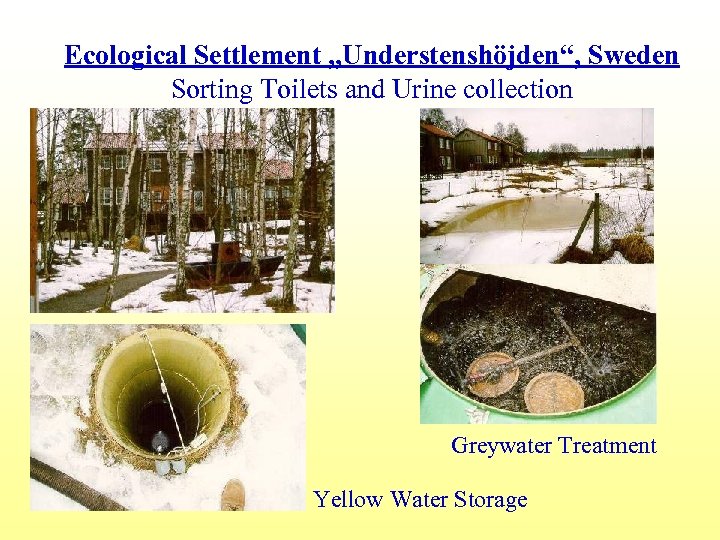Ecological Settlement „Understenshöjden“, Sweden Sorting Toilets and Urine collection Greywater Treatment Yellow Water Storage
