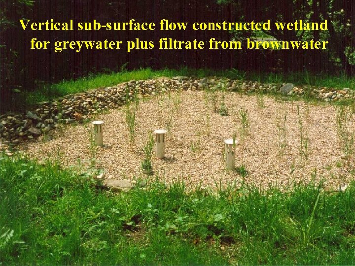 Vertical sub-surface flow constructed wetland for greywater plus filtrate from brownwater
