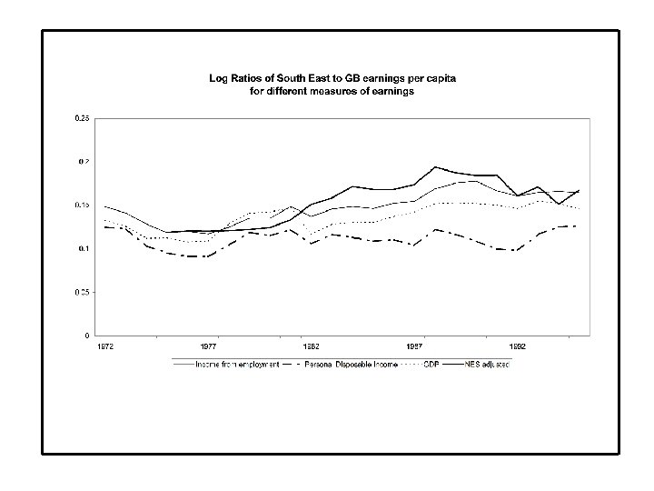possible explanations • The labour market and the housing market • Earnings, bargaining and the tax & benefit system; • Commuting, migration, and job migration; • Interest rates and mortgage debt; house prices; tenure. • Regional industrial structure • Banking and production industries exposed to different shocks: financial liberalisation, world trade, real exchange rates, interest rates; • Part-time working, and new working practices (ICT, call centres).