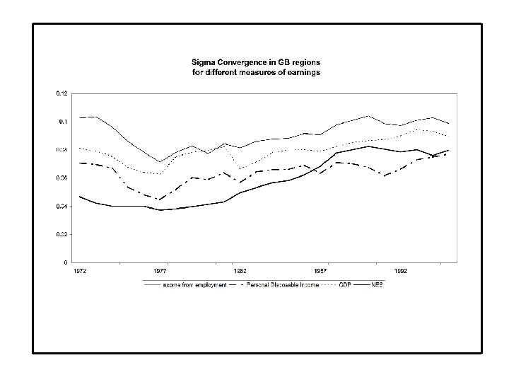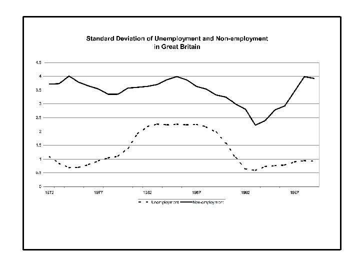 regional puzzles • Both unemployment and non-employment in Great Britain fell steadily after 1993. But there was a dramatic rise in the regional dispersion of non-employment rates, back to its 1974 and 1985 peak levels; there was no such rise in the regional dispersion of unemployment rates. • In the 1980 s, the income gaps between the South East and the rest of Britain grew considerably. The gap remained fairly large throughout the 1990 s, and may have risen again in the past couple of years.