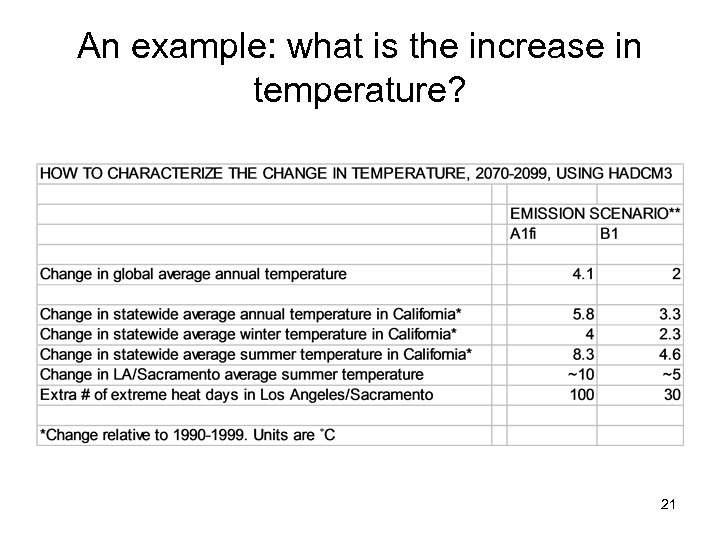 An example: what is the increase in temperature? 21