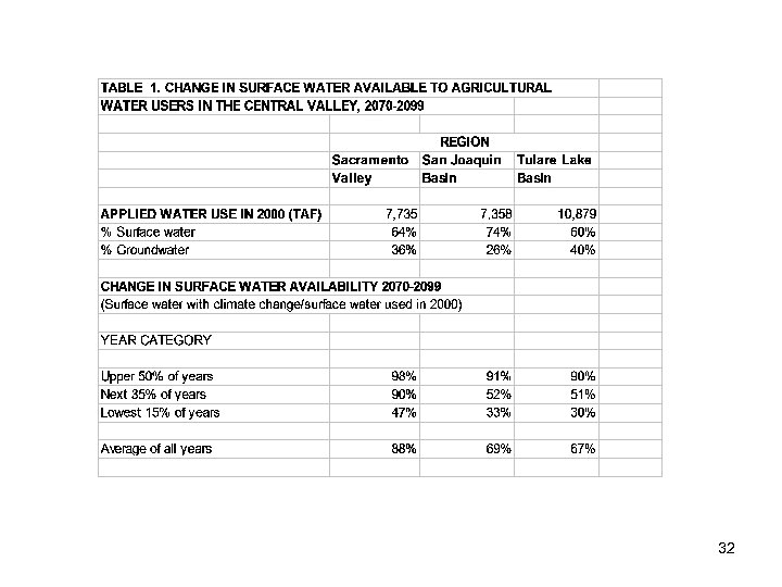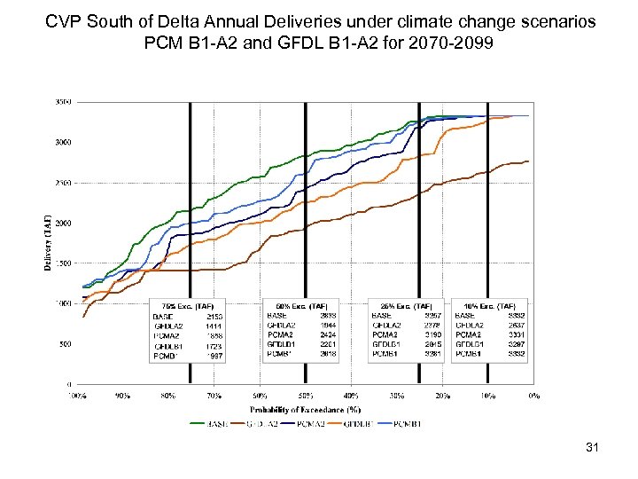 CVP South of Delta Annual Deliveries under climate change scenarios PCM B 1 -A 2 and GFDL B 1 -A 2 for 2070 -2099 31