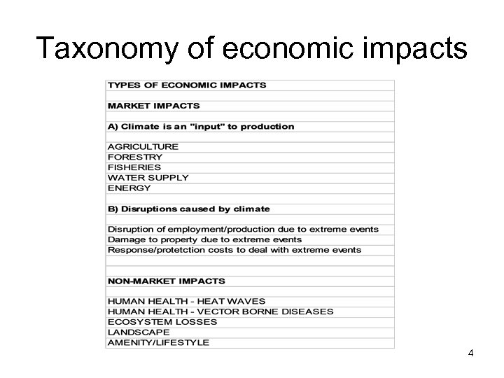 Taxonomy of economic impacts 4