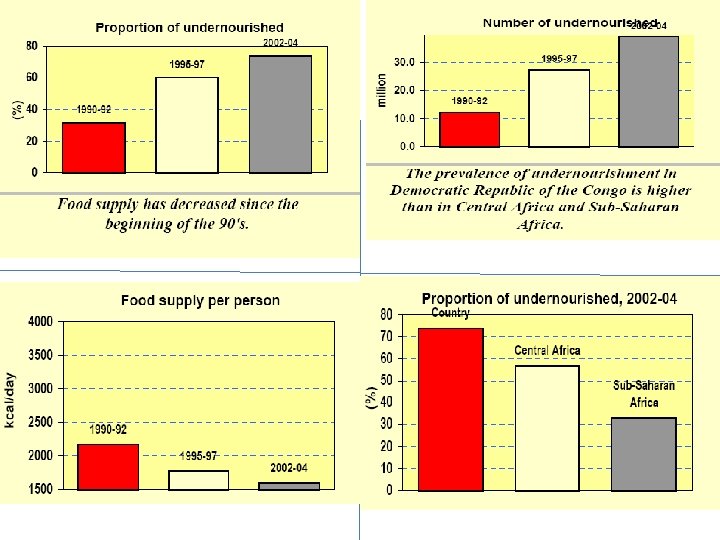 The Congo at a Glance • 3 rd Largest country in Africa (size of Western Europe or the U. S. west of the Mississippi), with the 4 th largest population. • One of the five poorest countries in the world. • One of the ten richest countries of the world in terms natural resources • Oil reserves of 180 million barrels • 100, 000 MW Hydroelectric potential which would be sufficient for all of Southern & Central Africa’s needs • Bordered by 9 countries • Population (2004 est. ): 58 million • More than 200 ethnic groups • Religions (2004 est): Roman Catholic 50%, Protestant 20%, other syncretic sects and traditional beliefs 10%, Kimbanguist 10%, Muslim 10% • Language: Official--French. National languages--Lingala, Swahili, Kikongo, Tshiluba