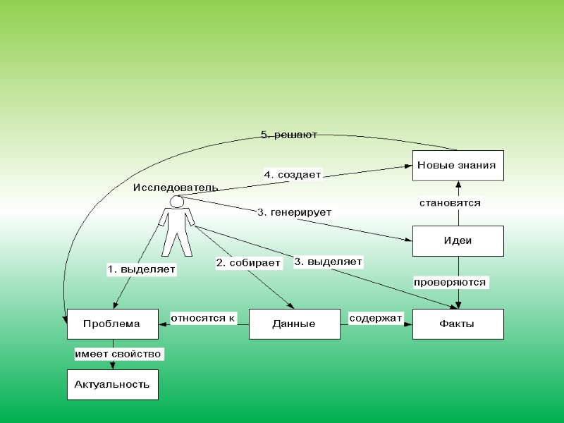 Необходимо организовать функции теоретического исследования достижений в данной отрасли науки и в данной предметной области; поисковые – поиск и выявление проблем и данных, относящихся к выявленным проблемам; аналитические – анализ проблем, данных, фактов; постановка целей и определение задач; креативные – рождение новых идей, формулировка новых знаний, новых решений.