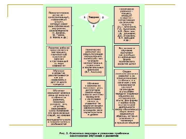 Обучение и развитие n Обучение – основа и средство развития психики и личности. n Обучение = Развитие(У. Джеймс, Э. Торндайк, Дж. Уотсон, К. Коффка) Обучение - в хвосте развития Развитие без обучения, влияние на внешние проявления развития (Ж. Пиаже) Обучение - параллельно и опережая развитие (Л. С. Выготский, Дж. Брунер) n n Единство развития психики и личности, не тождество