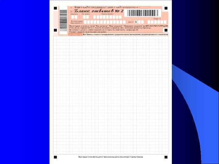 Верхняя часть бланка ответов № 2 для записи развернутых ответов на задания в свободной форме При недостатке места для ответа можно попросить у организатора дополнительный бланк ответов № 2. В этом случае в поле «Дополнительный бланк ответов № 2» основного бланка № 2 вписывается цифровой код дополнительного бланка.