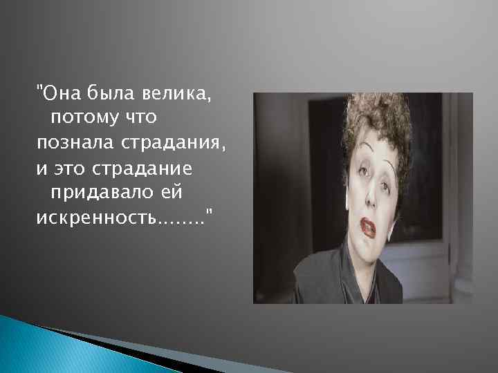 "Она была велика, потому что познала страдания, и это страдание придавало ей искренность. . . . "