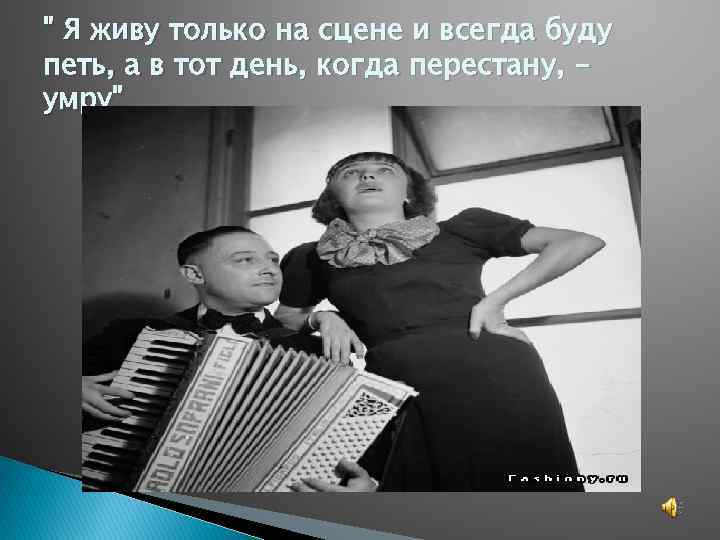 " Я живу только на сцене и всегда буду петь, а в тот день, когда перестану, умру"