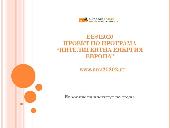EESI 2020 ПРОЕКТ ПО ПРОГРАМА “ИНТЕЛИГЕНТНА ЕНЕРГИЯ ЕВРОПА” WWW. EESI 20202. EU Европейски институт по труда