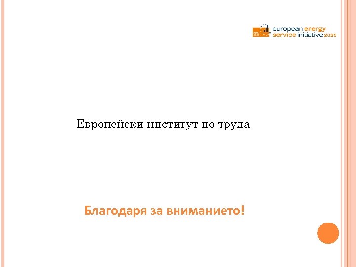 ЗА ПРОЕКТА - 2 Проектът се финансира от програма „Интелигентна енергия Европа”. В него участват партньори от 9 страни, между които и български екип - специалисти в областта на ЕЕ и ВЕИ от Европейски институт по труда /www. eli-energy. com/. Координатор е Берлинската енергийна агенция – БЕА. Проектът представялва „втора фаза” на Европейската инициатива 2020. Има за задача да мултиплицира положителните резултати от първата й фаза в нови европейски страни, а именно - да стимулира енергийното обновяване на публичния сграден фонд и инфраструктура чрез прилагане на Договори за енергоспестяване с гарантиран резултат – ДГР.