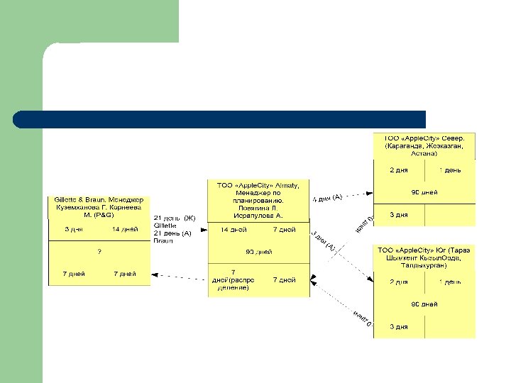 l Важно: – Определить основных и вспомогательных участников SC l l l – Определить четко сроки движения продукции и информации l – Выделить «bottle necks» по срокам По такой же аналогии сформировать структуру добавочной стоимости в цепочке поставок l – Оценить долю влияния участников на эффективность SC Определить «правильных» контактных лиц Понять цели работы выделенных партнеров Выделить «bottle necks» по добавочной стоимости СФОРМИРОВАТЬ ПЛАНЫ РАБОТЫ ПО ОПТИМИЗАЦИИ