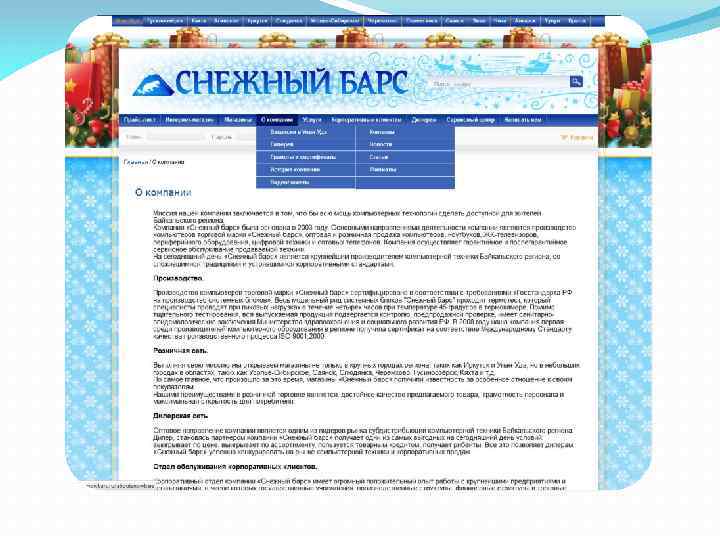 О компании и ген. директоре ООО «Снежный барс» основано в 2003 году Раднаевым Виталием Антоновичем. Головной офис: г. Улан-Удэ, ул. Сахьяновой, 5. тел. 43 -55 -15, 43 -00 -00 E-mail: main@snowbars. ru Web-site: http: //oldsite. snowbars. ru Миссия: «Всю мощь компьютерных технологий сделать доступной для жителей Байкальского региона» . Виды деятельности организации: 1) Производство компьютеров торговой марки «Снежный барс» ; 2) Оптовая и розничная продажа компьютеров (стационарных);