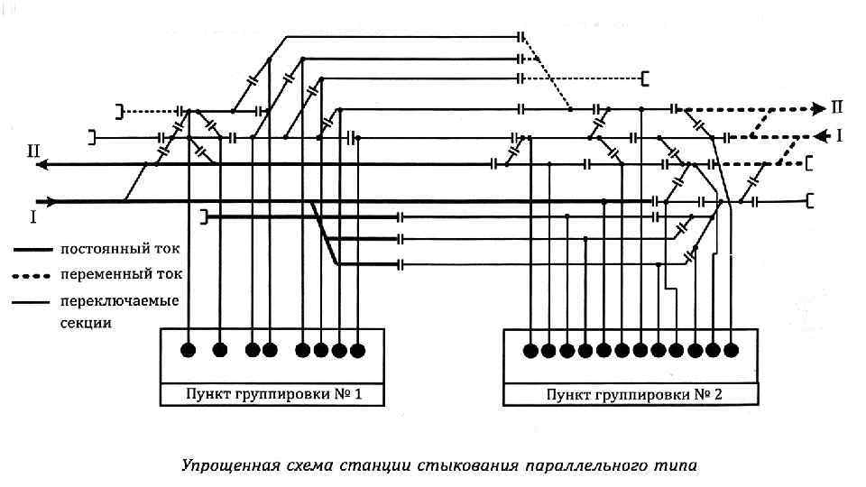 Схема питания и секционирования контактной сети на линях переменного тока