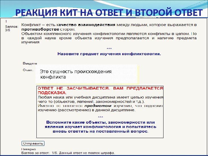 РЕАКЦИЯ КИТ НА ОТВЕТ И ВТОРОЙ ОТВЕТ Это сущность происхождения Сущность конфликта