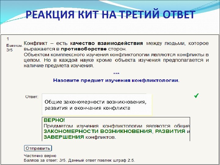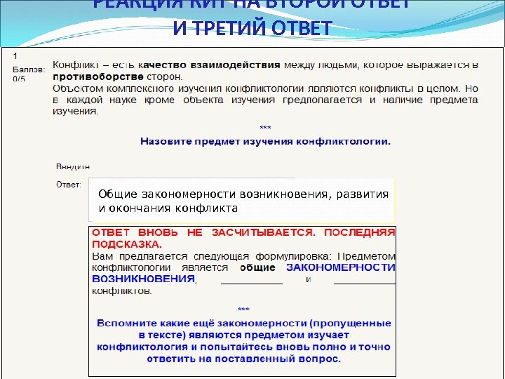 РЕАКЦИЯ КИТ НА ВТОРОЙ ОТВЕТ И ТРЕТИЙ ОТВЕТ Общие закономерности возникновения, развития Это сущность происхождения конфликта и окончания конфликта