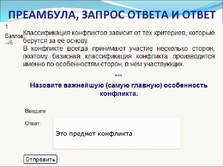 ПРЕАМБУЛА, ЗАПРОС ОТВЕТА И ОТВЕТ Это сущность конфликта