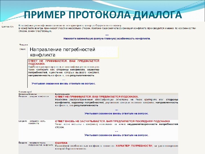 ПРИМЕР ПРОТОКОЛА ДИАЛОГА Направление потребностей конфликта