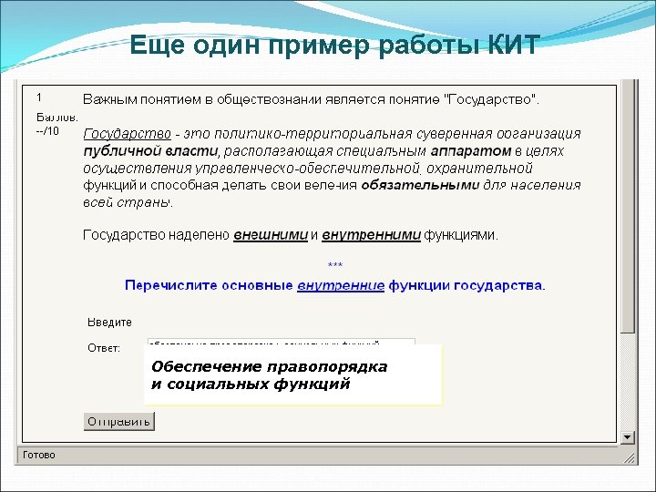 Еще один пример работы КИТ Обеспечение правопорядка и социальных функций
