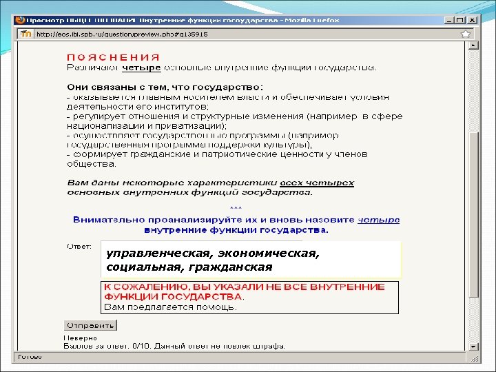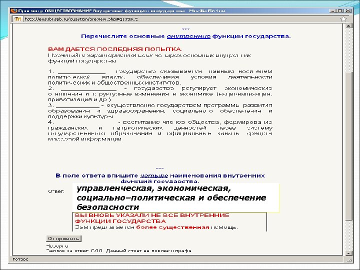 управленческая, экономическая, социально–политическая и обеспечение безопасности