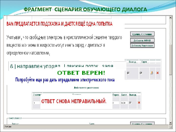 ФРАГМЕНТ СЦЕНАРИЯ ОБУЧАЮЩЕГО ДИАЛОГА