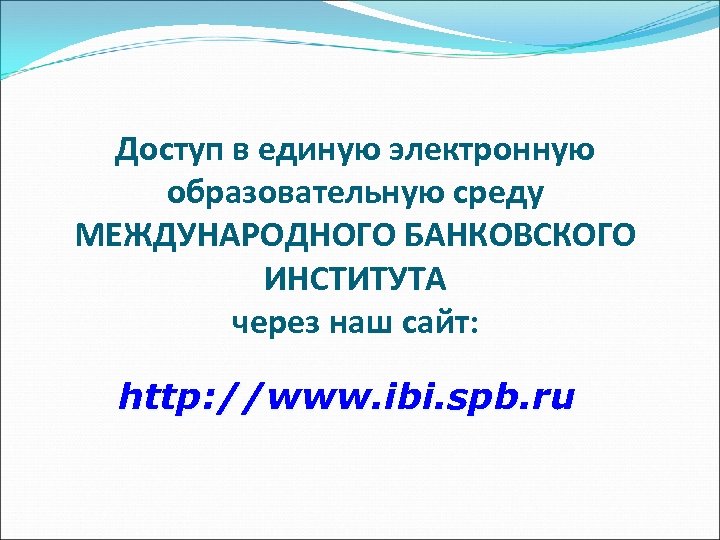 Доступ в единую электронную образовательную среду МЕЖДУНАРОДНОГО БАНКОВСКОГО ИНСТИТУТА через наш сайт: http: //www. ibi. spb. ru
