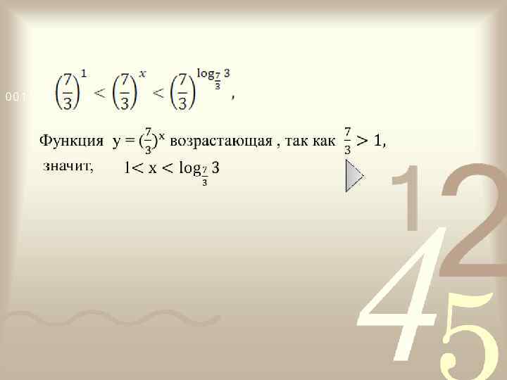 Рассмотрим второе неравенство системы. 32· 9 x ≤ 60· 3 x -7, 32· 32 x - 60· 3 x+7 ≤ 0, Пусть 3 x=t, где t>0 32 t 2 -60 t+7 ≤ 0 Решением неравенства является множество Ответ: