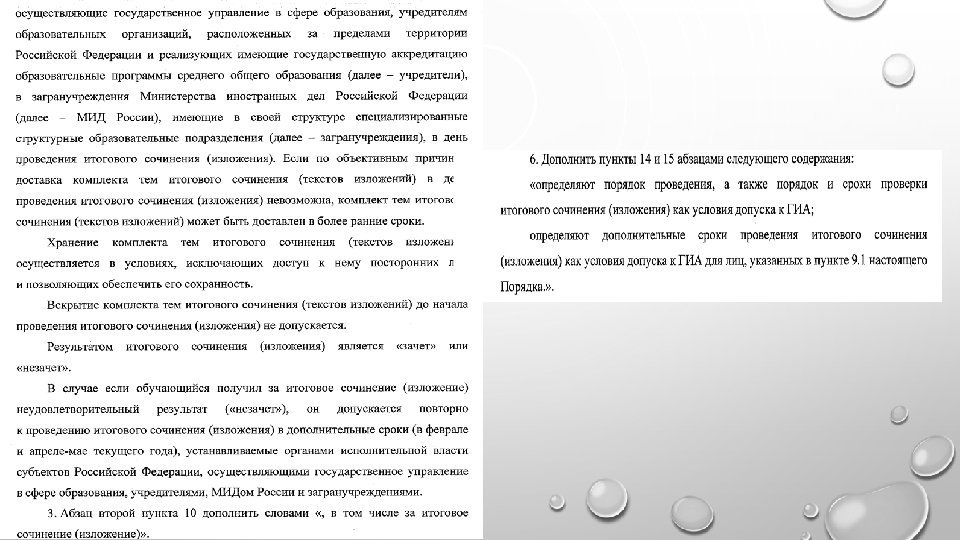 Участникам итогового сочинения • РЕГИСТРАЦИЯ НА УЧАСТИЕ В ИТОГОВОМ СОЧИНЕНИИ (ИЗЛОЖЕНИИ ). • ПОРЯДОК И СРОКИ РЕГИСТРАЦИИ НА УЧАСТИЕ В ИТОГОВОМ СОЧИНЕНИИ (ИЗЛОЖЕНИИ), А ТАКЖЕ ПОРЯДОК ПРОВЕРКИ ИТОГОВОГО СОЧИНЕНИЯ (ИЗЛОЖЕНИЯ) ОПРЕДЕЛЯЕТСЯ НА РЕГИОНАЛЬНОМ УРОВНЕ. • ДЛЯ УЧАСТИЯ В ИТОГОВОМ СОЧИНЕНИИ (ИЗЛОЖЕНИИ) ОБУЧАЮЩЕМУСЯ, ВПЛ НЕОБХОДИМО ПОДАТЬ ЗАЯВЛЕНИЕ НЕ ПОЗДНЕЕ, ЧЕМ ЗА 2 НЕДЕЛИ ДО НАЧАЛА ПРОВЕДЕНИЯ ИТОГОВОГО СОЧИНЕНИЯ (ИЗЛОЖЕНИЯ). • ЗАЯВЛЕНИЯ ПОДАЮТСЯ УЧАСТНИКАМИ ИТОГОВОГО СОЧИНЕНИЯ (ИЗЛОЖЕНИЯ) В СВОЕЙ ОБРАЗОВАТЕЛЬНОЙ ОРГАНИЗАЦИИ ЛИЧНО НА ОСНОВАНИИ ДОКУМЕНТА. • ВПЛ ПОДАЮТ ЗАЯВЛЕНИЯ НА УЧАСТИЕ В ИТОГОВОМ СОЧИНЕНИИ (ИЗЛОЖЕНИИ) В МЕСТАХ РЕГИСТРАЦИИ, ОПРЕДЕЛЕННЫХ ОИВ (ПРИЛОЖЕНИЕ 2). • ВПЛ ПРИ ПОДАЧЕ ЗАЯВЛЕНИЯ ПРЕДЪЯВЛЯЮТ ОРИГИНАЛЫ ДОКУМЕНТОВ ОБ ОБРАЗОВАНИИ. • ВСЕ УЧАСТНИКИ ИТОГОВОГО СОЧИНЕНИЯ (ИЗЛОЖЕНИЯ) ПРИ ПОДАЧЕ ЗАЯВЛЕНИЯ НА УЧАСТИЕ ПРЕДОСТАВЛЯЮТ СОГЛАСИЕ НА ОБРАБОТКУ ПЕРСОНАЛЬНЫХ ДАННЫХ (ПРИЛОЖЕНИЕ 3). • УЧАСТНИКИ ИТОГОВОГО СОЧИНЕНИЯ (ИЗЛОЖЕНИЯ) С ОВЗ ПРИ ПОДАЧЕ ЗАЯВЛЕНИЯ ДЛЯ ОРГАНИЗАЦИИ СПЕЦИАЛЬНЫХ УСЛОВИЙ ПРЕДЪЯВЛЯЮТ ЗАКЛЮЧЕНИЯ ПМПК, А УЧАСТНИКИ ДЕТИ- ИНВАЛИДЫ И ИНВАЛИДЫ – СПРАВКУ, ПОДТВЕРЖДАЮЩУЮ ФАКТ УСТАНОВЛЕНИЯ ИНВАЛИДНОСТИ, ВЫДАВАЕМУЮ ФЕДЕРАЛЬНЫМИ ГОСУДАРСТВЕННЫМИ УЧРЕЖДЕНИЯМИ МЕДИКО-СОЦИАЛЬНОЙ ЭКСПЕРТИЗЫ.