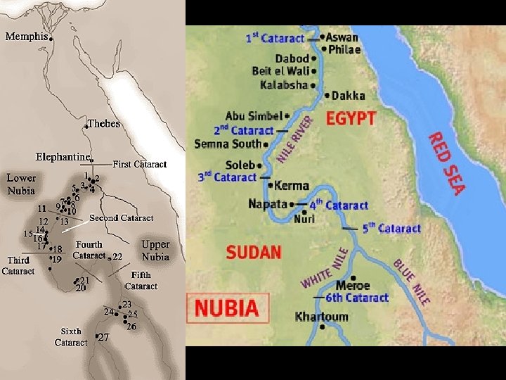 Nile River Begins in heart of Africa and runs over 4, 000 miles l Northern part- Lower Egypt l Southern part- Upper Egypt l Flooding -Agriculture, 10 mile wide Black Land, Red Land l Natural Barriers l