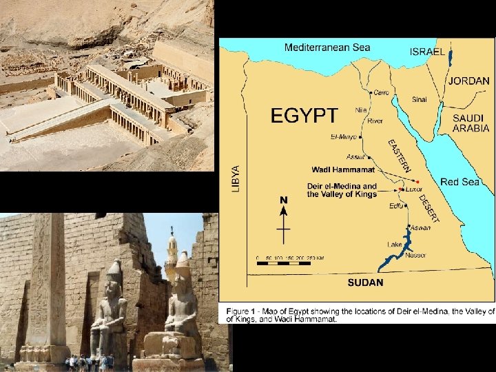 New Kingdom 1567 to 1085 BC- new militaristic path, more contact with Africa and Asia l Hatshepsut- first female ruler l Thutmose III- stepson, 17 campaigns l Akhenaton- introduced god of sundisk l Tutankhamen- restored old way, “boy king” l Ramses II- 1279 to 1213 BC, fought back and bragged all over temples l Everything collapsed in 1085 BC l