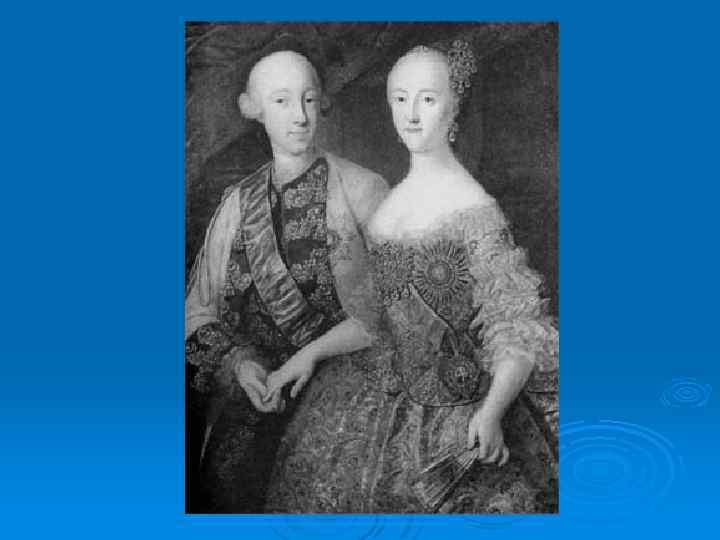 Ø После свадьбы для 16 -летней Екатерины началась продолжительная школа испытаний. Серо и черство началась ее семейная жизнь. "Я очень хорошо видела, - писала она позже, - что великий князь вовсе не любит меня. Через две недели после свадьбы он опять признался мне в своей страсти к девице Карр, императрициной фрейлине. Графу Дивиеру, своему камергеру, он сказал, что между этой девушкой и мною не может быть никакого сравнения. Дивиер был противного мнения, он на него рассердился за это. Эта сцена происходила почти в моем присутствии, и я видела, как он дулся на Дивиера.