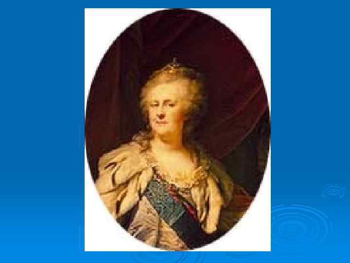 Основные моменты жизни Ø Русская императрица (1762 -1796); Ø С 1744 года — в России. С 1745 г. жена великого князя Петра Федоровича, будущего императора Петра III, которого свергла с престола (1762 г. ), опираясь на гвардию (Г. Г. и А. Г. Орловых и др. ). Ø Провела реорганизацию Сената (1763), секуляризацию земель (1763 -64), упразднила гетманство на Украине (1764). Возглавляла Уложенную комиссию 1767 -1769 годов. При ней произошла Крестьянская война 1773 -1775 годов. Издала Учреждение для управления губернией 1775, Жалованную грамоту дворянству 1785 и Жалованную грамоту городам 1785. Ø При Екатерине II в результате русско-турецких войн 1768 -1774, 1787 -1791 годов Россия окончательно закрепилась на Черном море, были присоединены Сев. Причерноморье, Крым, Прикубанье. Приняла под российское подданство Восточную Грузию (1783).