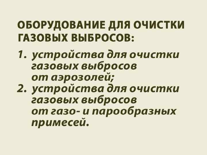 Классификация выбросов вредных веществ в атмосферу по агрегатному состоянию Газообразные (SO 2, NOx, CO 2, углеводороды) ¡ Жидкие (кислоты, щелочи, растворы солей) ¡ Твердые (сажа, органическая и неорганическая пыль, смолистые вещества, свинец и его соединения и др. ) ¡