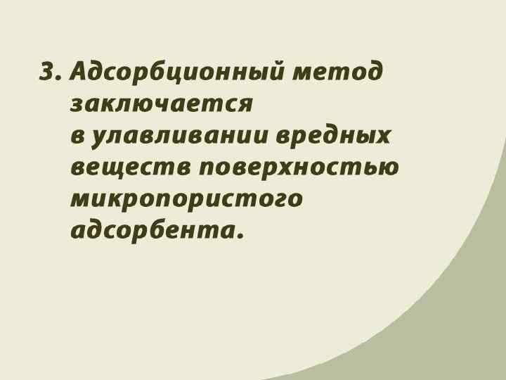 Биологическая очистка ¡ Основана на способности микроорганизмов использовать растворенные и коллоидные органические и некоторые неорганические соединения в качестве источника питания в процессах своей жизнедеятельности. При этом органические соединения окисляются до воды и углекислого газа. l l Поля орошения, поля фильтрации, биологические пруды, аэротенки, биофильтры.